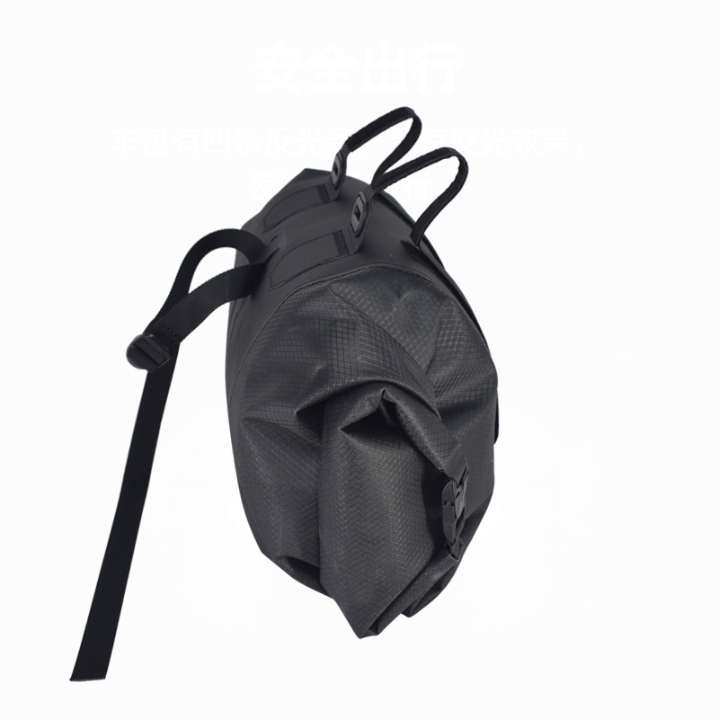 Special shape and upgraded straps Our bicycle bag adopts a unique double-sided folding design, which is both beautiful and practical. The internal PU pad has strong impact resistance and can protect items such as phones and wallets in case of accidental drops. The upgraded straps are much better than before. They are designed to address deflection issues and maintain the position of the bag during cycling. Rain proof function The bicycle is equipped with a foldable seal, which can effectively prevent rainwater from seeping in. But don't soak it in water for a long time. Installation function Installing our bicycle bag is easy. It has two durable tapes and a rubber buckle. The strap can be easily fixed to the seat pillar. The buckle provides additional safety, firmly securing the bag during bumpy rides. This allows for quick installation and ensures the stability of the bag during cycling. Improved visibility at night Night safety is very important. Our bicycle bag has two high reflective strips that can effectively reflect the light of the vehicle and streetlights, making you more conspicuous.